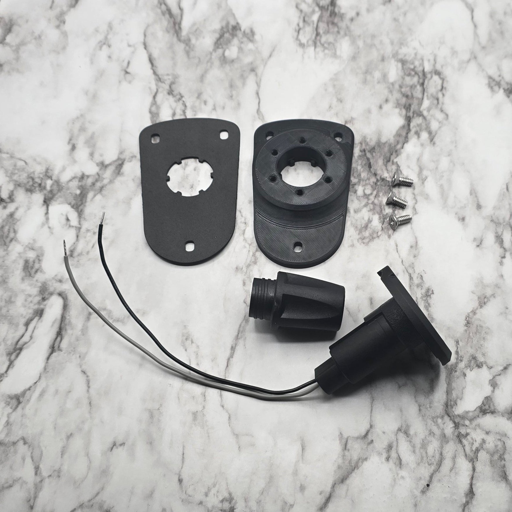 Thru Hull Wiring Plate - Available as the plate only or with a single, generic thru hull wiring kit.  This plate is designed to host the older (Not Gridloc) style thru hull wiring kit made by Yakattack but may work with many other off brand options available on Amazon and other outlets.  Check out our custom flexible inserts available for the thru hull wiring kits.  Gridloc YA version coming soon!