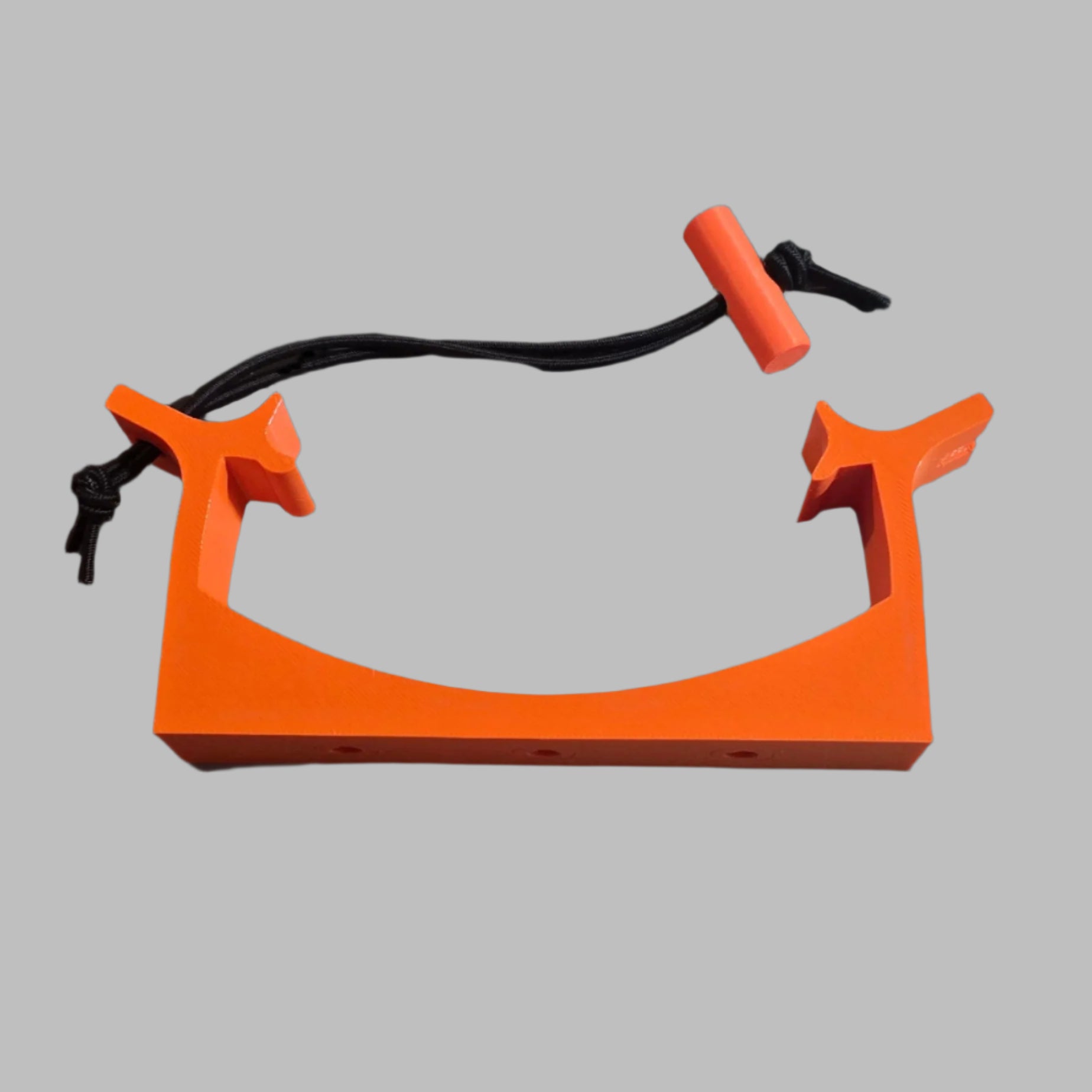 Custom designed flexible, quiet mount that tightly grips a YakGear FishStik measuring board. Designed to mount to a YakAttack BlackPak Pro but can easily be mounted to any surface or crate via 3 screw holes. Comes with rod and bungee to secure the board for transport. Mounting base also available for more stable, secure storage. Mounting holes can accommodate #8 or #10 flathead bolts. If mounting to a milk crate, it may be necessary to fashion a spacer (see photo) for the base depending on the crate.